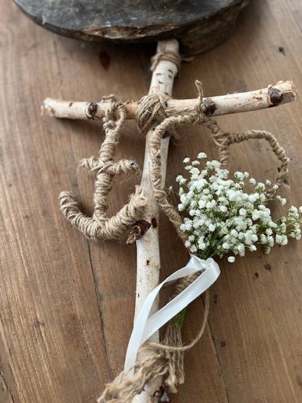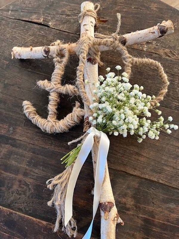 Hoop- een robuust kruis van berkenstammen