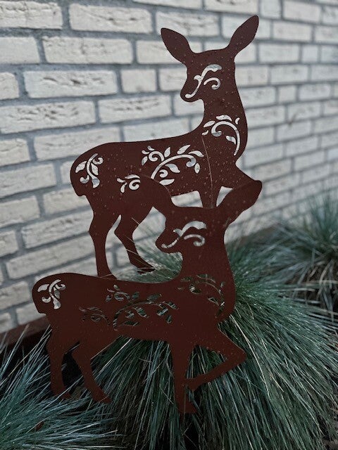 Breng warme, landelijke sfeer in je tuin met dit prachtige rendier van bruin plaatmateriaal.